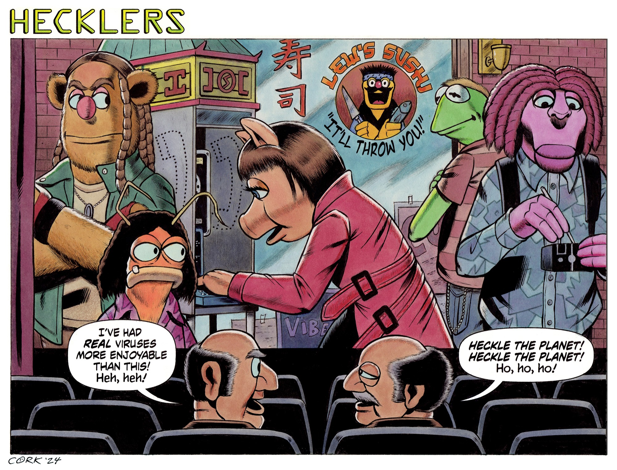 New commission: a Muppet version of HACKERS (1995) featuring Kermit, Piggy, Fozzy, Pepe, Clifford, Statler, Waldorf, and a sneaky Lew Zealand cameo. Mixed media on 9 X 12" watercolor paper. #MuppetMonday